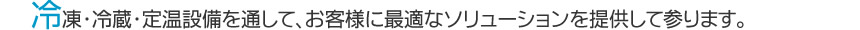 冷凍・冷蔵・定温設備通して、お客様に最適なソリューションを提供してまいります。